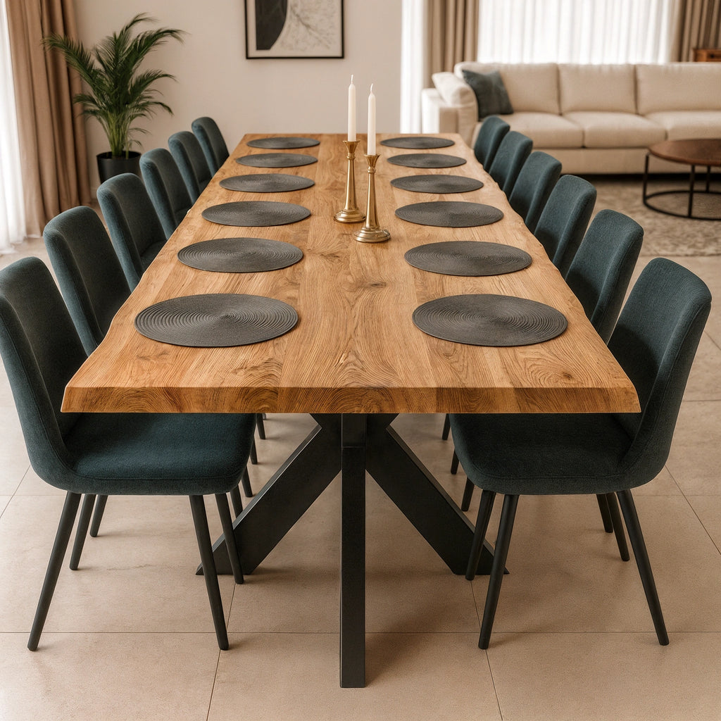 Stains or moisture on the table surface should be cleaned immediately with a damp cloth and a little soap. In addition, it is recommended to treat the table regularly with a solvent-free oil, which protects the wood and restores its natural shine. With these methods, your oak table will remain beautiful and durable for many years.