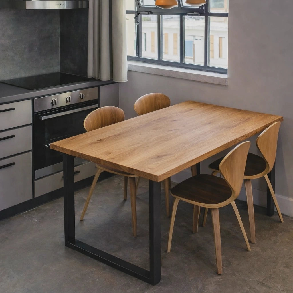 Această masă din stejar masiv aduce natura direct în casa ta. Blatul este finisat cu grijă pentru a păstra frumusețea și caracterul natural al lemnului. Lemnul de stejar este renumit pentru durabilitatea sa, fiind perfect pentru mese de dining sau pentru birouri. De asemenea, datorită varietății de dimensiuni disponibile, această masă se poate adapta perfect oricărei încăperi. Poți alege să-ți personalizezi masa sau să optezi pentru o variantă deja pregătită, cu tot cu cadru de susținere.