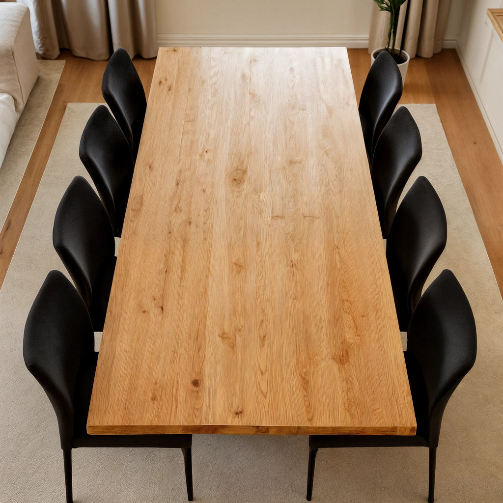 Această masă din stejar masiv aduce natura direct în casa ta. Blatul este finisat cu grijă pentru a păstra frumusețea și caracterul natural al lemnului. Lemnul de stejar este renumit pentru durabilitatea sa, fiind perfect pentru mese de dining sau pentru birouri. De asemenea, datorită varietății de dimensiuni disponibile, această masă se poate adapta perfect oricărei încăperi. Poți alege să-ți personalizezi masa sau să optezi pentru o variantă deja pregătită, cu tot cu cadru de susținere.