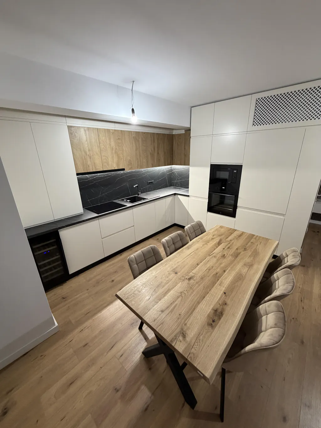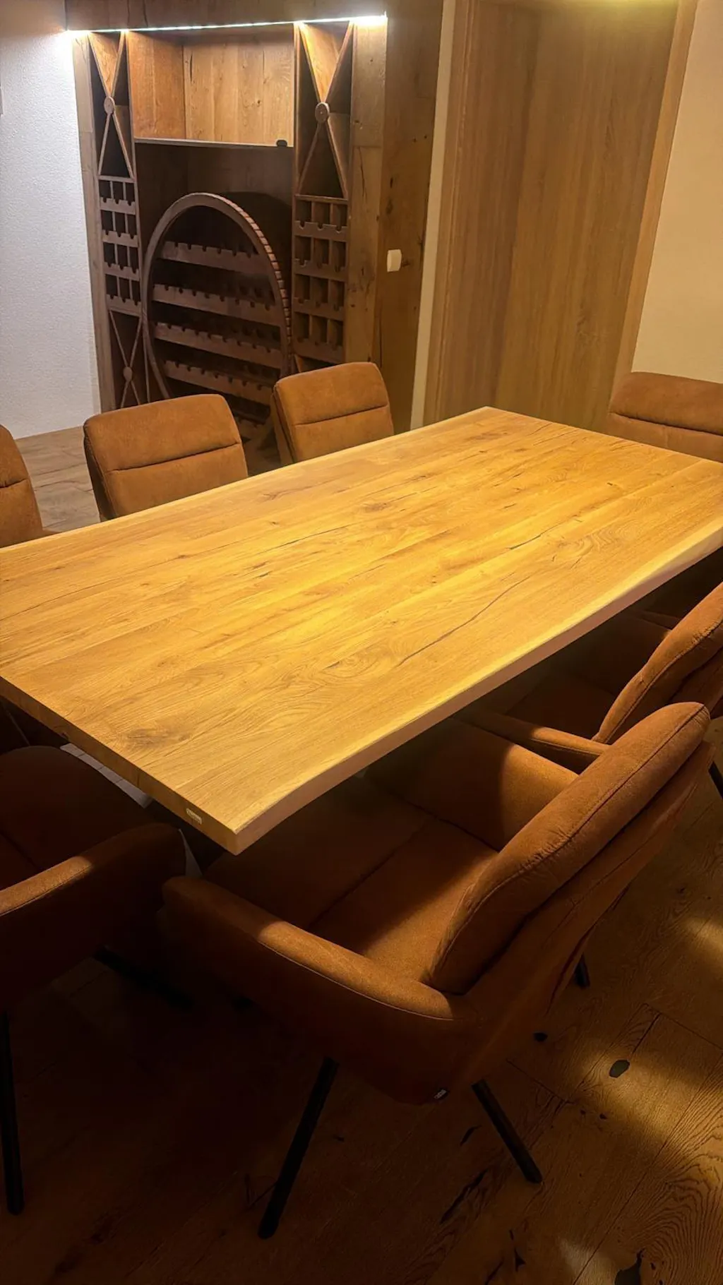 Această masă din stejar masiv aduce natura direct în casa ta. Blatul este finisat cu grijă pentru a păstra frumusețea și caracterul natural al lemnului. Lemnul de stejar este renumit pentru durabilitatea sa, fiind perfect pentru mese de dining sau pentru birouri. De asemenea, datorită varietății de dimensiuni disponibile, această masă se poate adapta perfect oricărei încăperi. Poți alege să-ți personalizezi masa sau să optezi pentru o variantă deja pregătită, cu tot cu cadru de susținere.