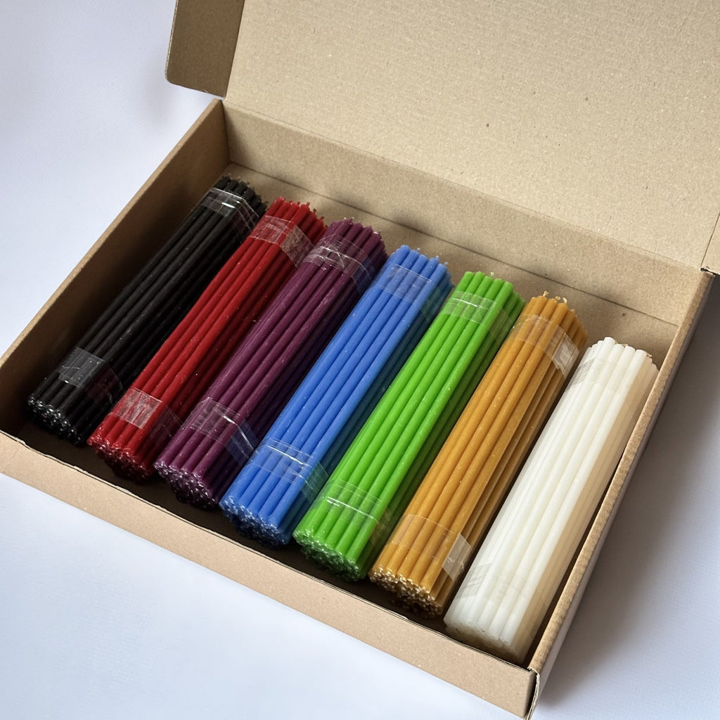 Set lumanari din ceara naturala de albine – 231 bucati, 7 culori (Nr. 80) Lumanarile din ceara naturala de albine reprezinta o alegere eleganta si practica pentru orice locuinta, aducand o nota de liniste, rafinament si confort. Aceste lumanari sunt ideale atat pentru uz casnic, cat si pentru momentele de rugaciune sau meditatie, creand o atmosfera calda si armonioasa. Datorita compozitiei lor naturale si mirosului discret specific cerii de albine, ele pot fi folosite zilnic pentru relaxare, decor sau in scopuri spirituale, fiind potrivite pentru orice moment al zilei.