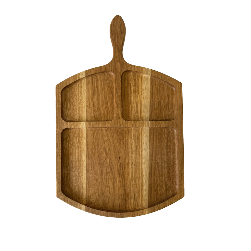 Suport de servire din lemn de stejar cu trei compartimente